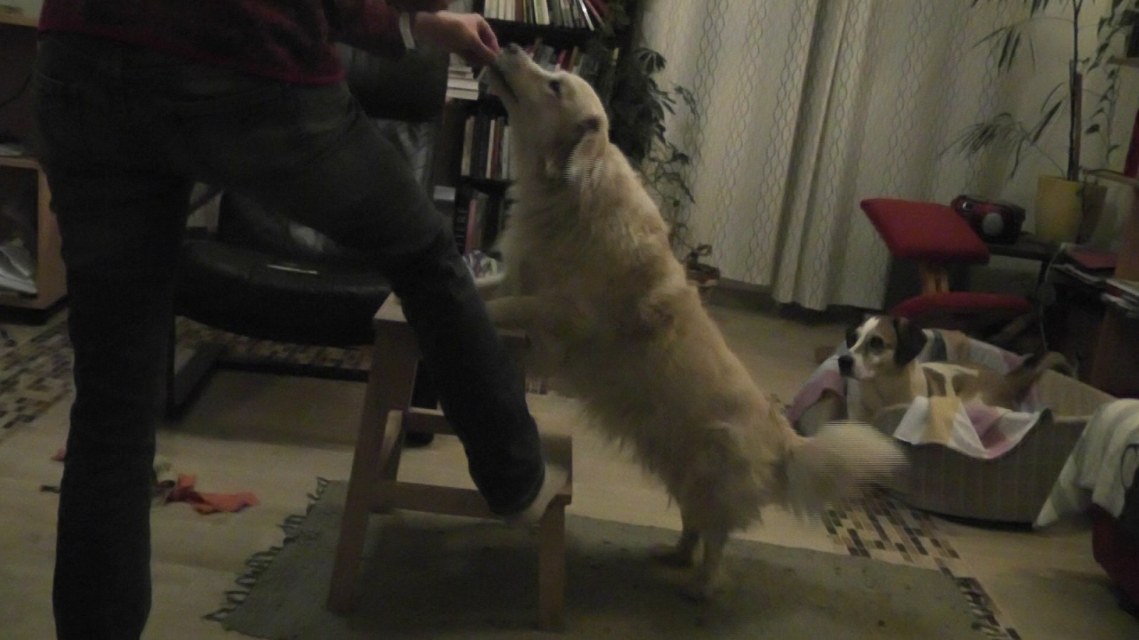 Nemo bekommt seinen Keks, Baghira ist noch mit Kauen beschäftigt: